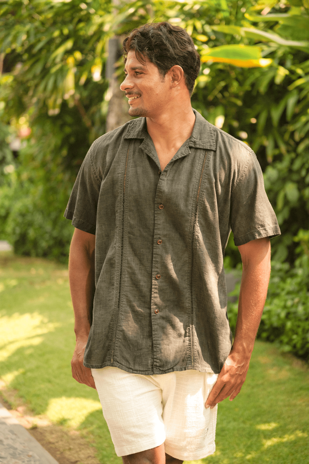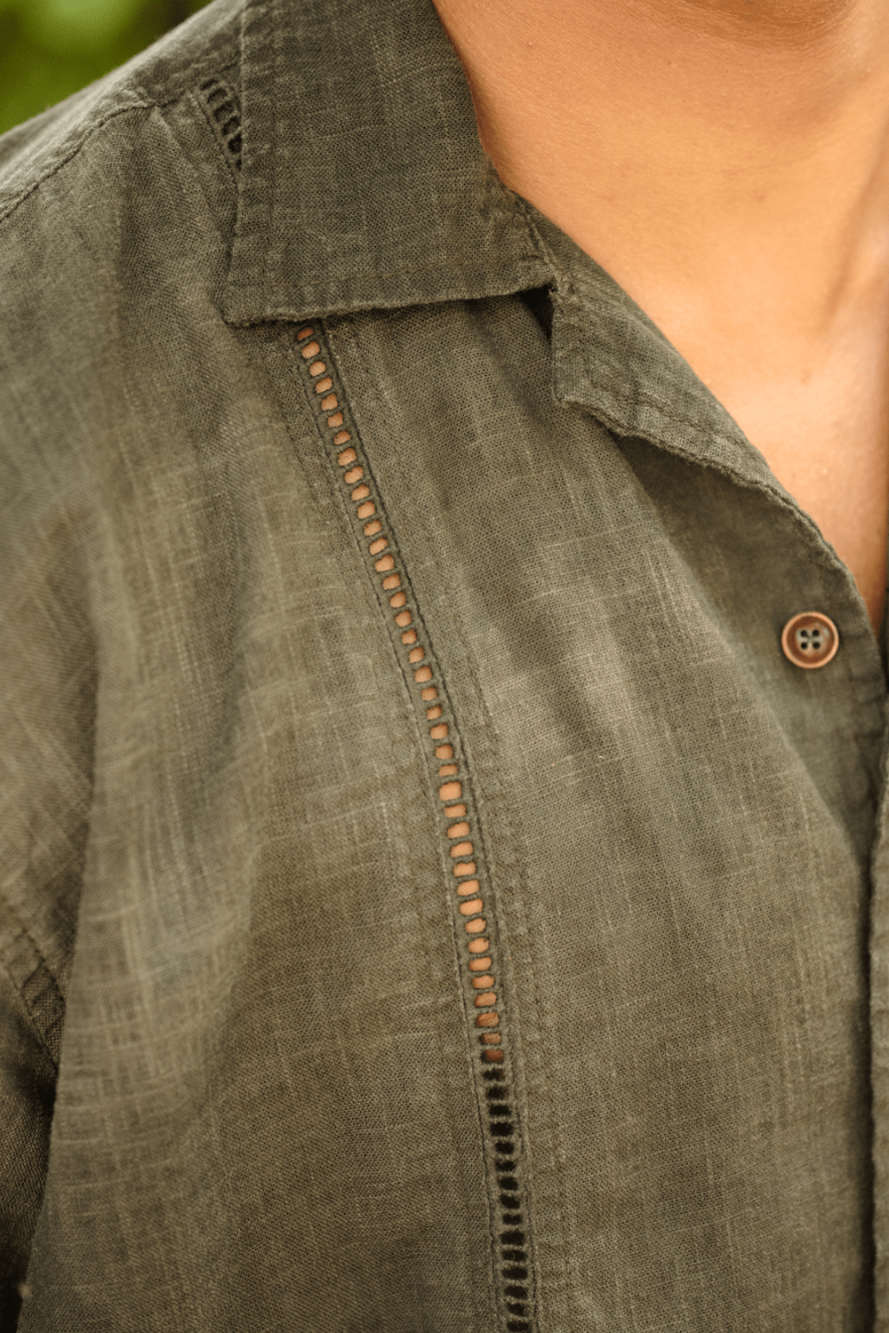 It's unique embroidery on the sleeves and front adds a subtle yet eye-catching detail, elevating the design with a touch of sophistication. The army hue brings a natural, relaxed elegance, making it the perfect choice for those laid-back summer days.